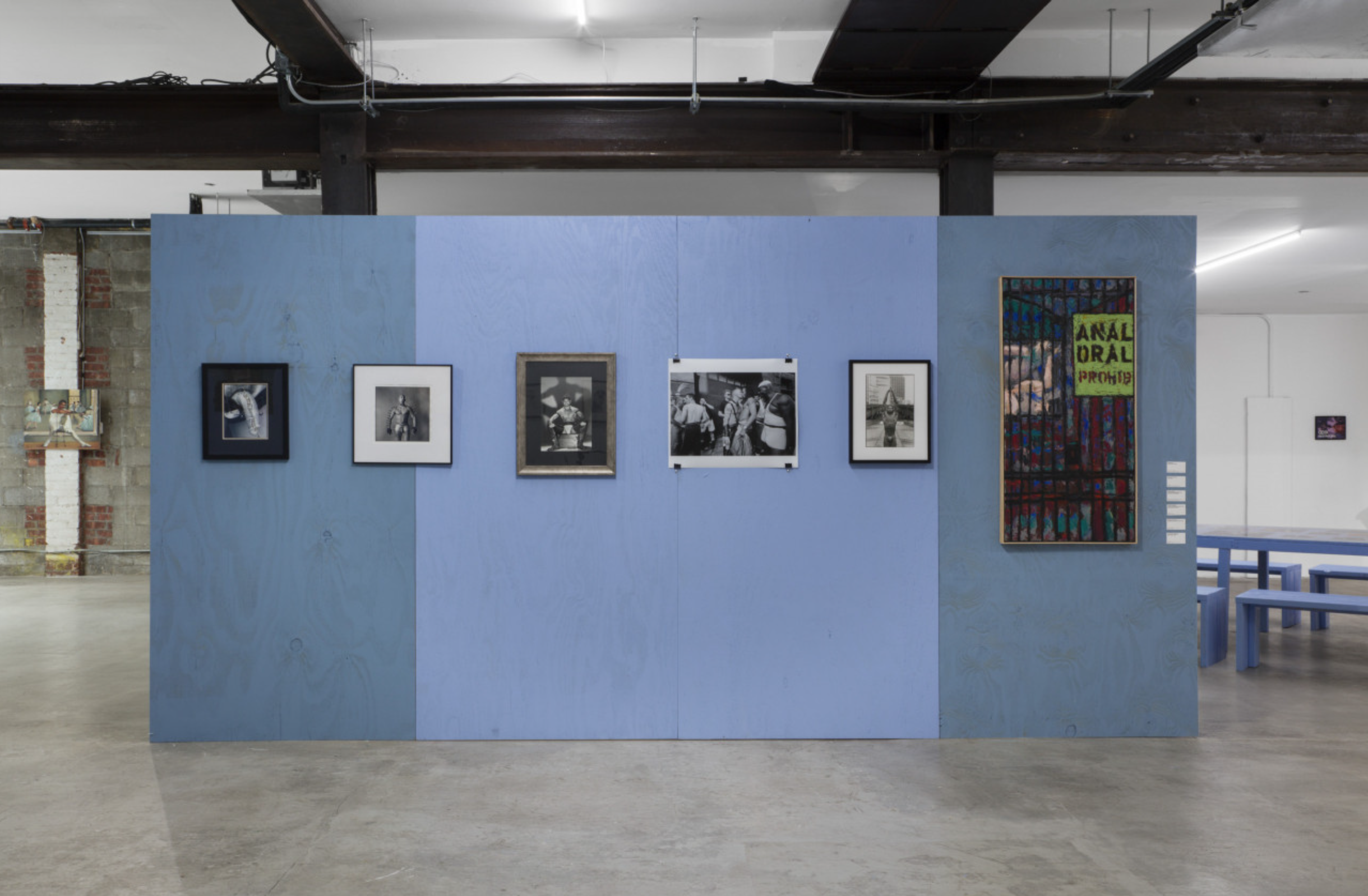 The exhibition included a lot of magazines featuring erotic art, ranging from the 1940s onward. Some were overtly gay with titles like Queen’s Quarterly, others like Physique Pictoral attempted to hide in plain sight under the guise of men’s fitness. The curators devised an ingenious (in my opinion) way to display these archival materials by placing them under a sheet of plexi atop a large canteena-style table, custom built for the show. This not only provided an informal respite, it also allowed you to engage them with your body in much the same way you would at home. Throughout the extensive programming you’d commonly see people’s drinks and other belongings strewn about the surface. A simple but effective shift away from the formality of the wall, or a traditional vatreen, which can often feel more like a mausoleum.